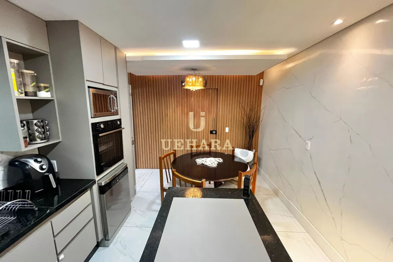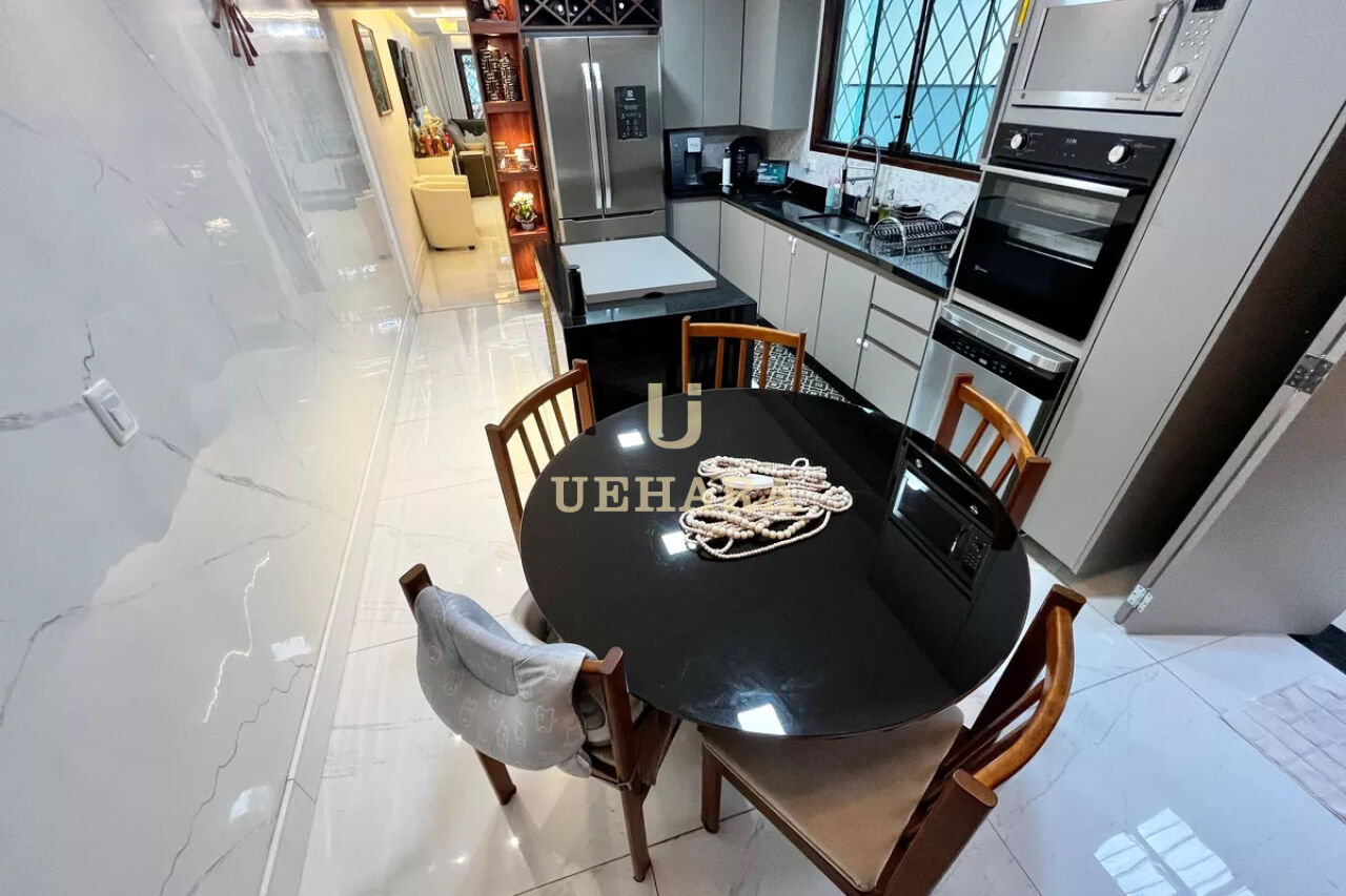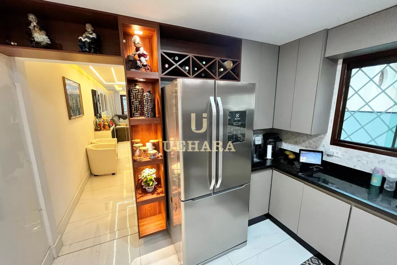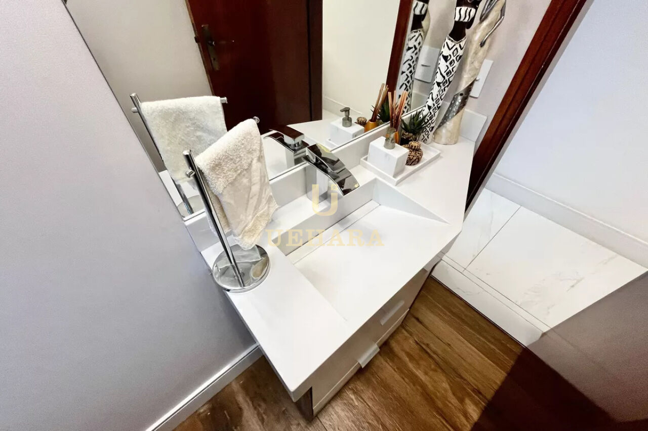 A cozinha planejada e funcional, possui armários de alta qualidade e oferece uma área de serviço espaçosa, com banheiro, e quintal, 06 vagas de garagem.