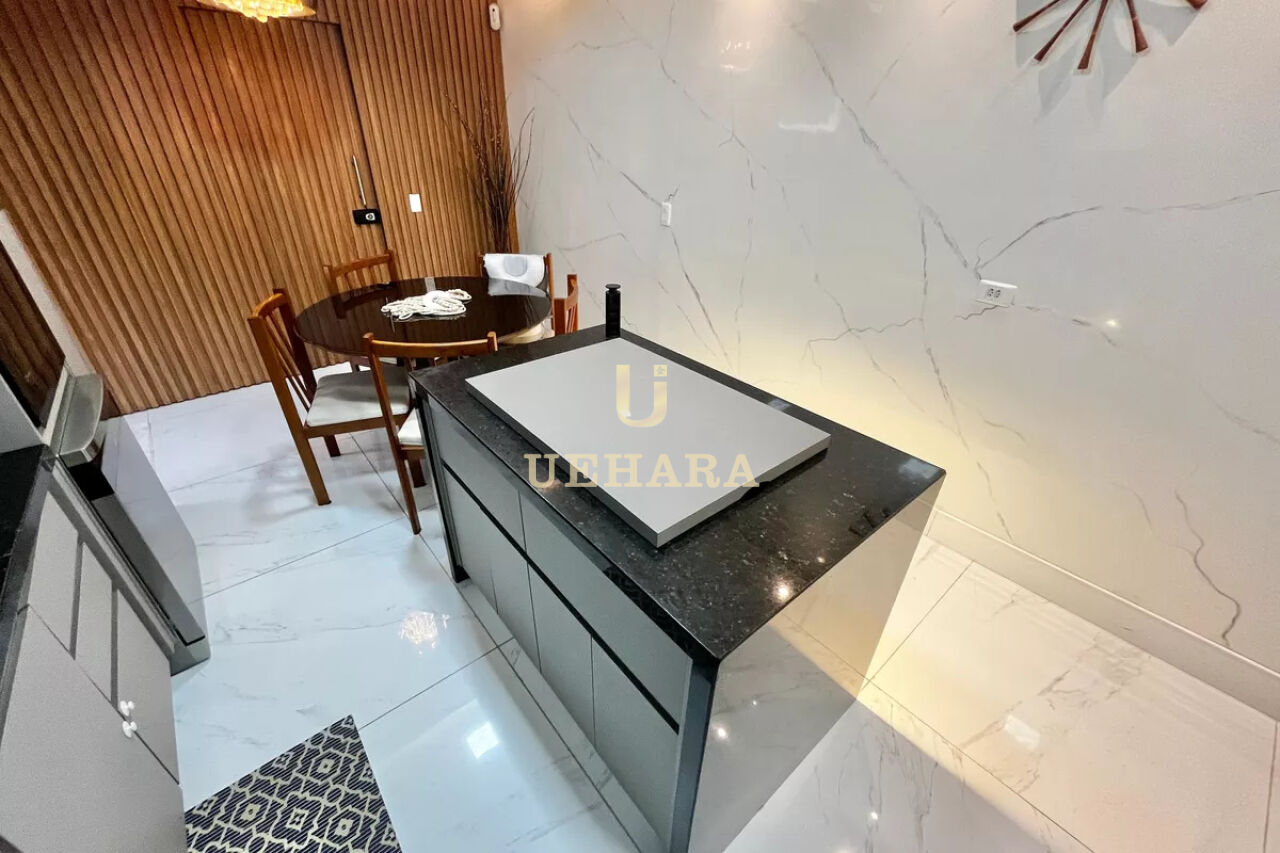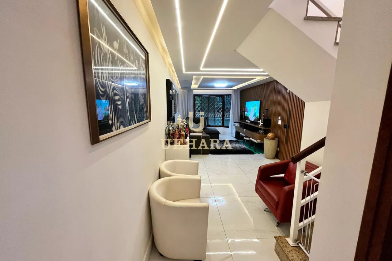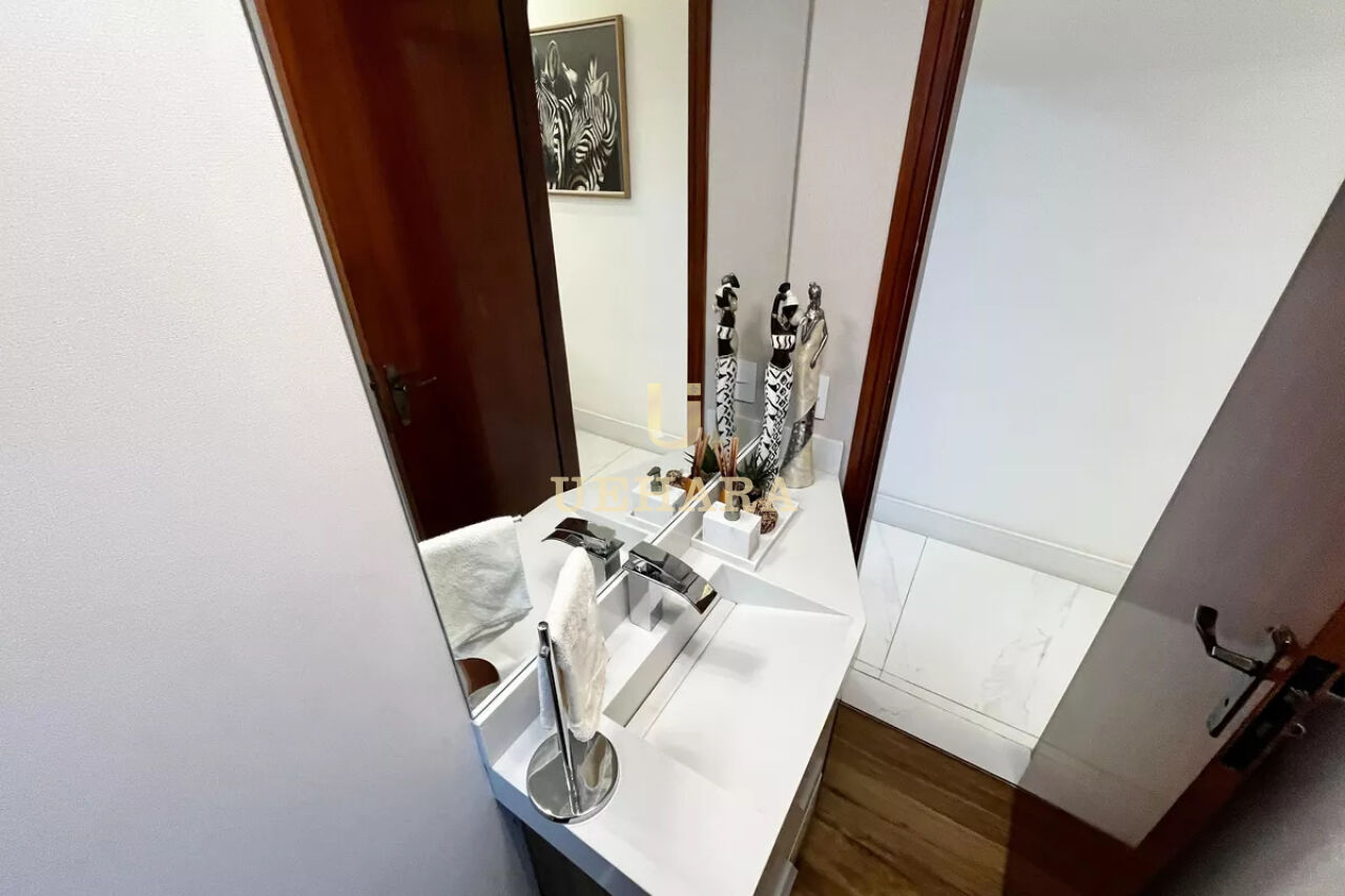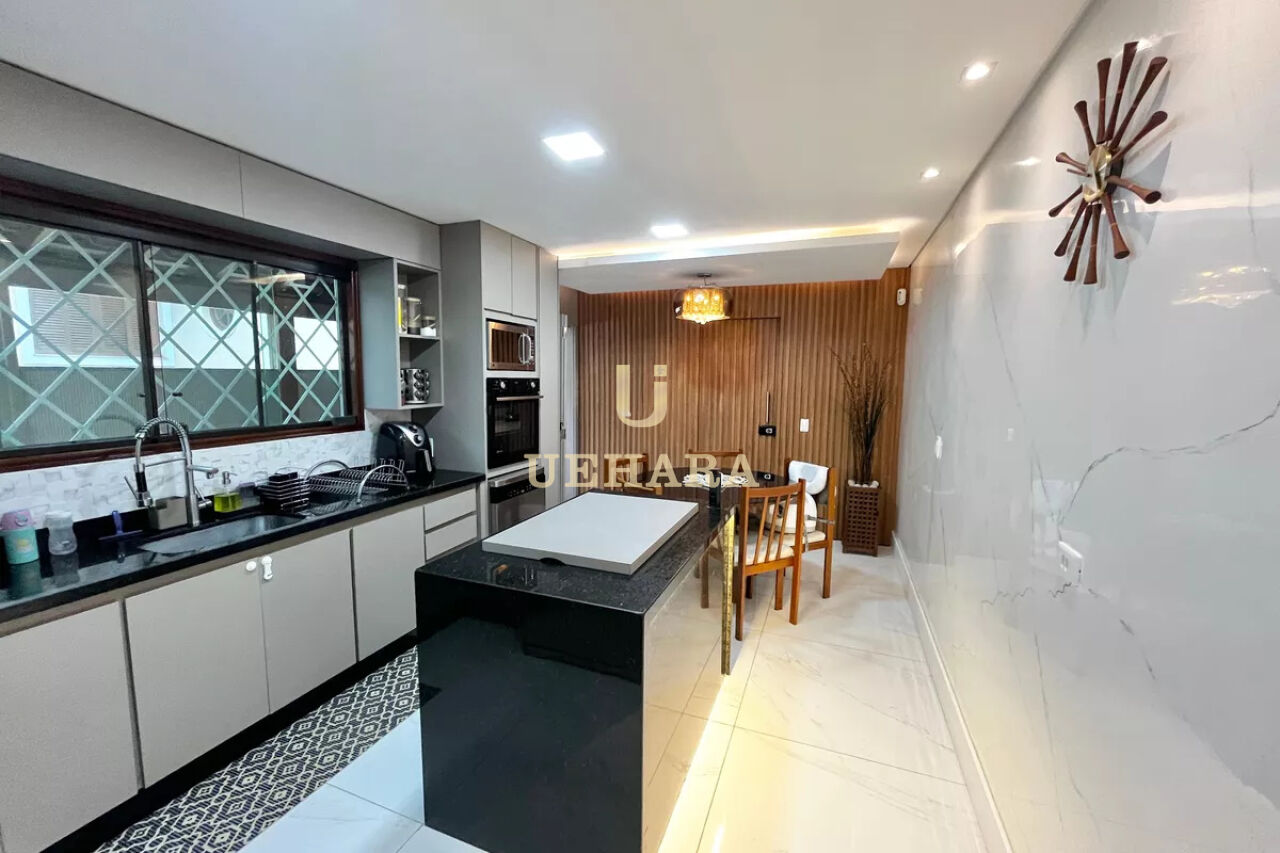 A cozinha planejada e funcional, possui armários de alta qualidade e oferece uma área de serviço espaçosa, com banheiro, e quintal, 06 vagas de garagem.