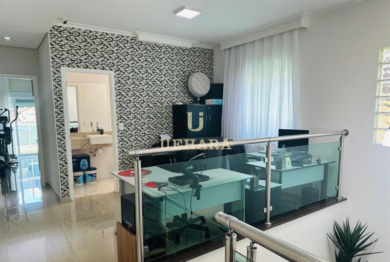 Sobrado de 236m² de área útil, com 04 amplos dormitórios e todos suítes, sendo 01 deles adaptado para escritório, facilmente reversível, sala ampla e cozinha totalmente planejada , garagem para 05 carros.
